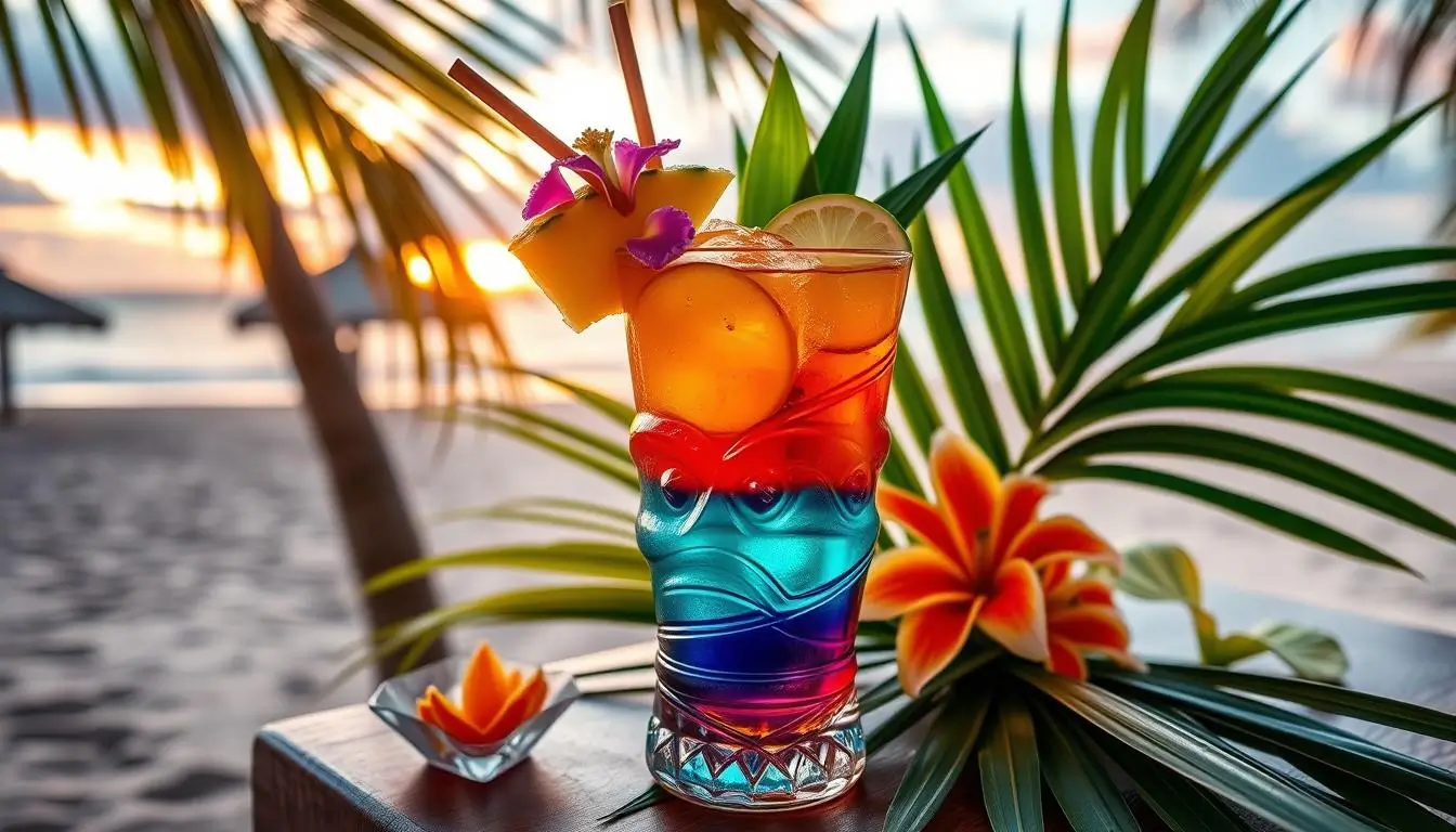 Mixing a tiki drink with rum gin needs patience and creativity. Each part tells a story, making a drink that’s unforgettable.
